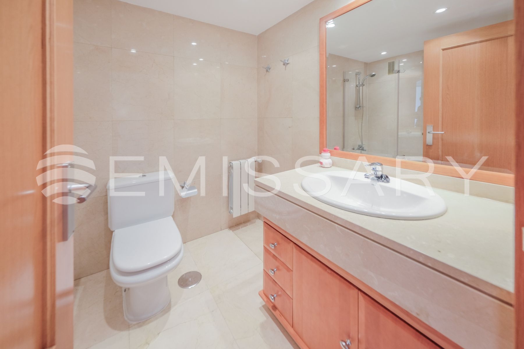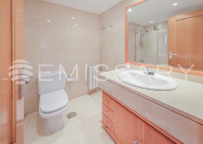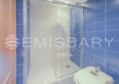 - Baño secundario, en cerámica, con ducha nueva, mampara a estrenar, rociador efecto lluvia y grifería termostática.