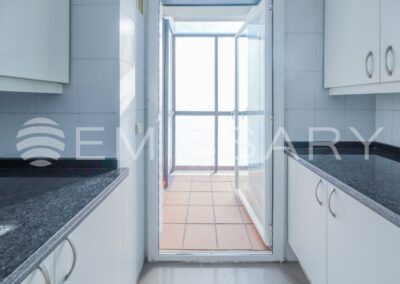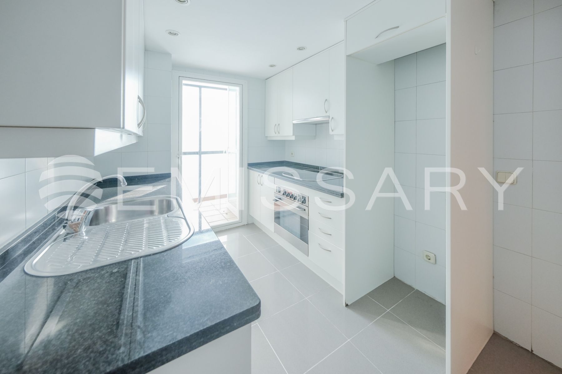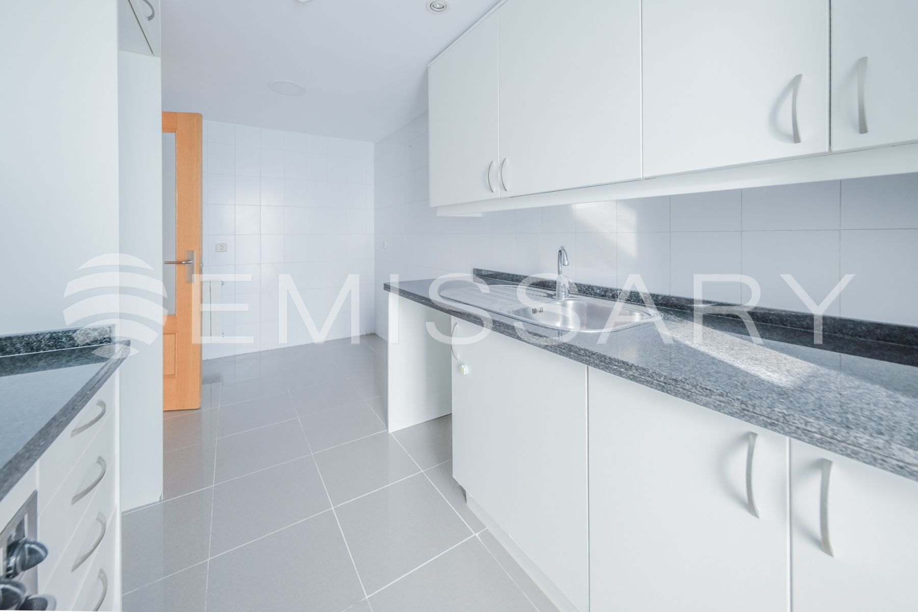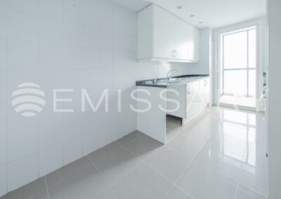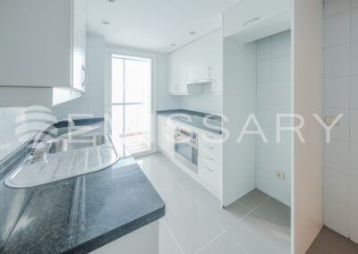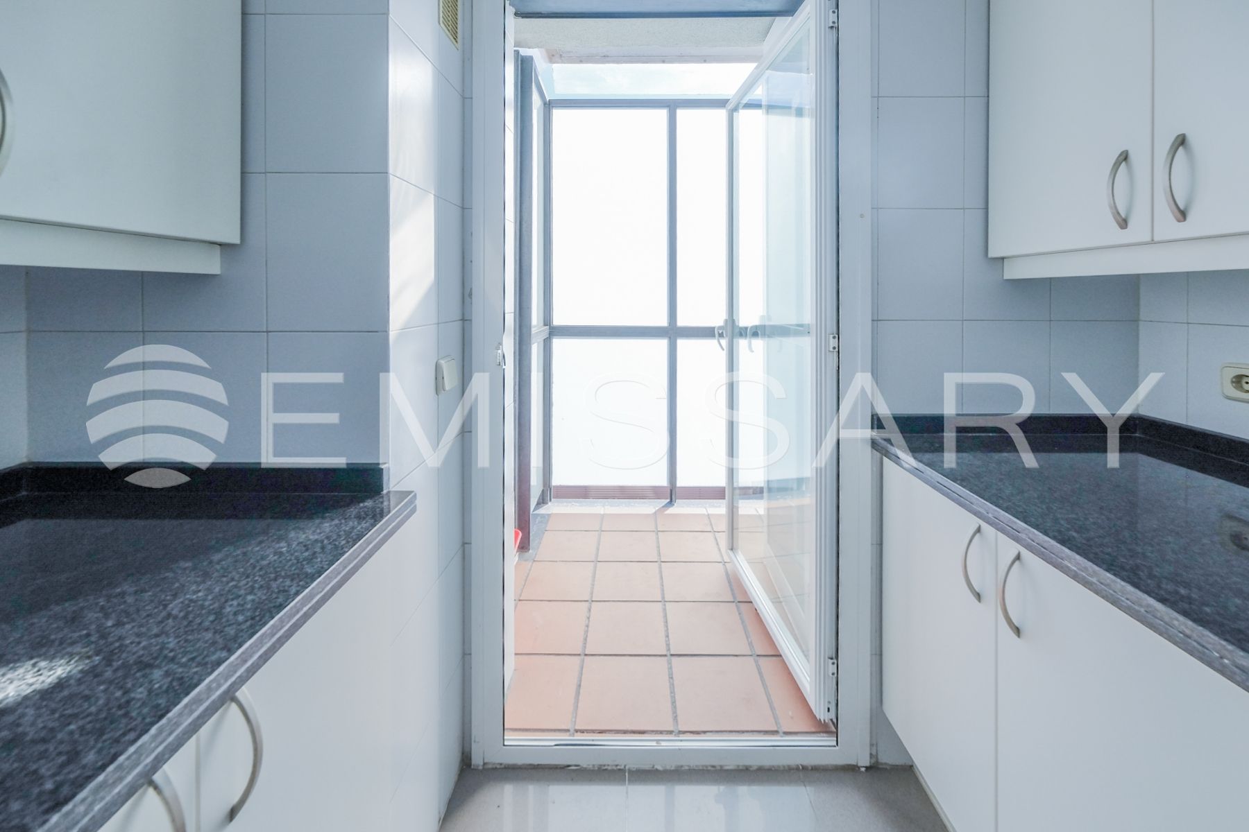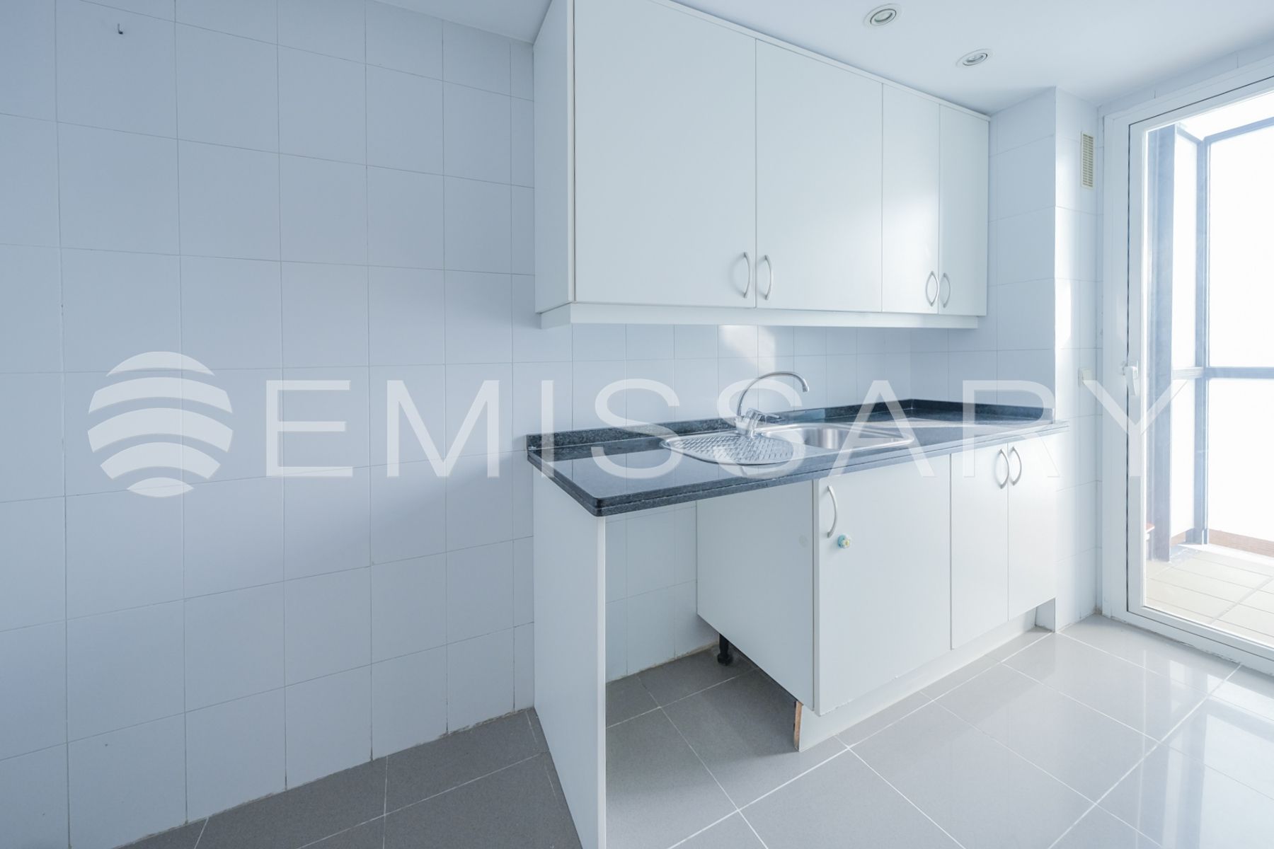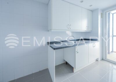 - Cocina amueblada, con encimera de granito negro. No tiene electrodomésticos.