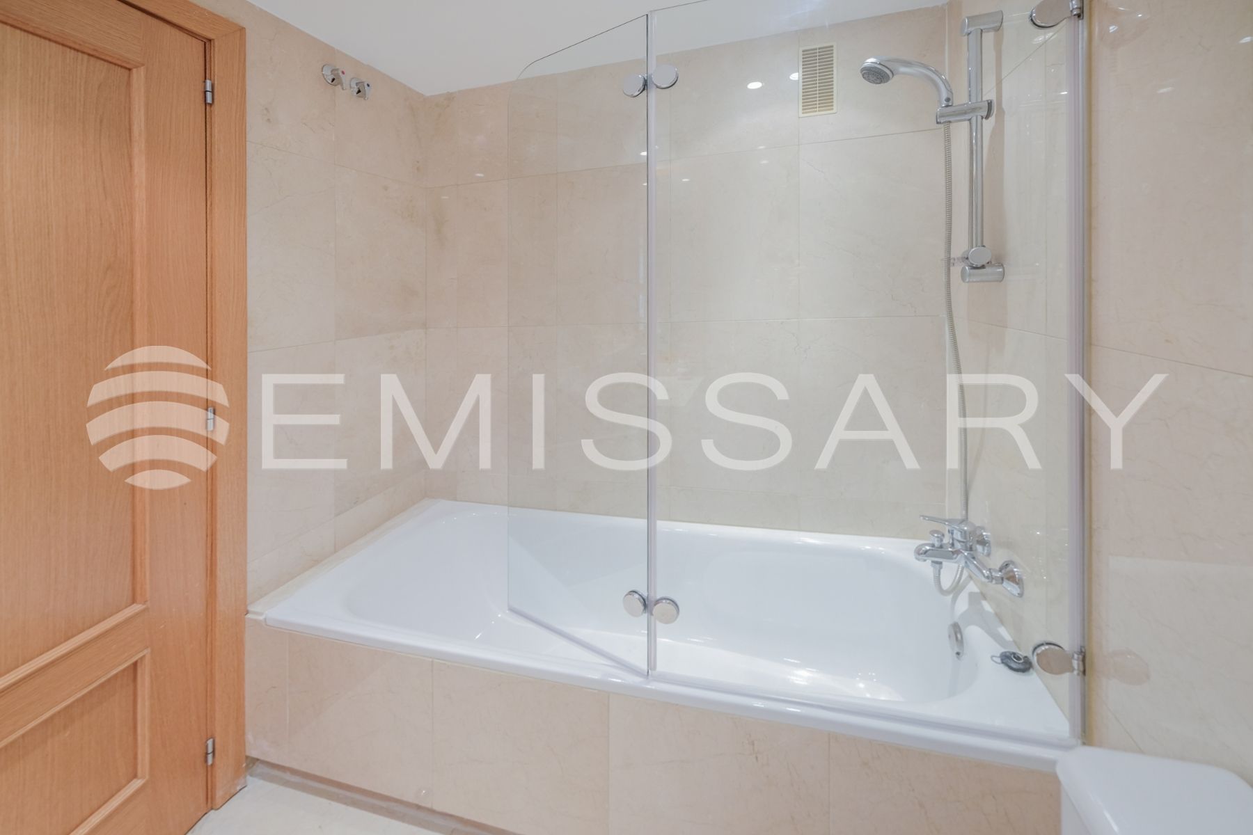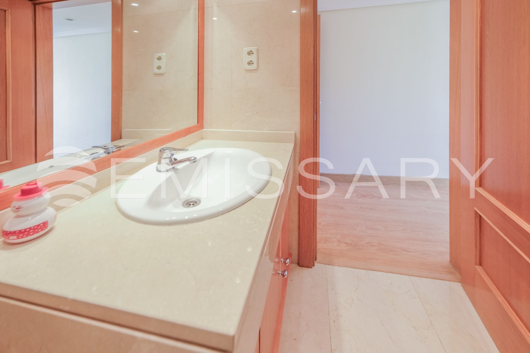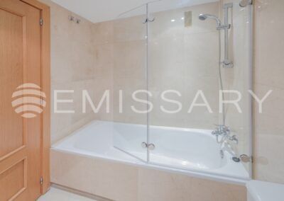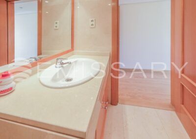 - Baño principal en mármol, con lavabo encastrado y bañera.