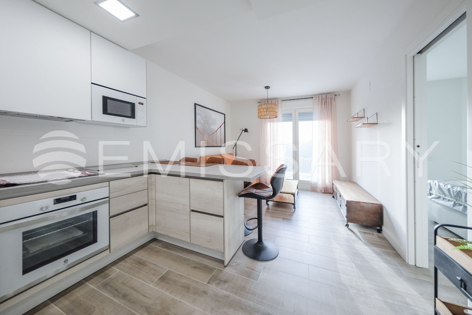 Se distribuye en hall de entrada con armario empotrado, cocina americana con barra y ventana, salón -comedor con grandes ventanales, habitación con gran armario empotrado y baño completo con plato de ducha.