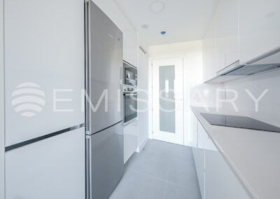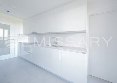 - Cocina completamente equipada, con todos los electrodomésticos de la marca Bosch, encimera de Silestone y frente de la cocina también en Silestone. Zona de office, que permite poner una mesa para comer en familia. También dispone de un amplio tendedero.