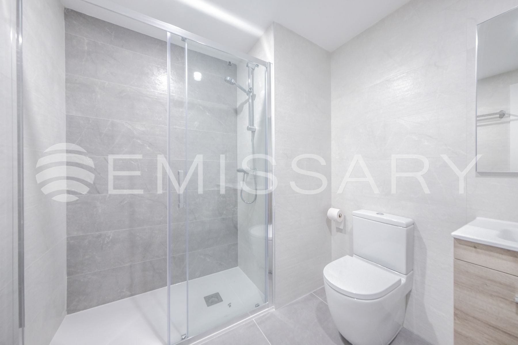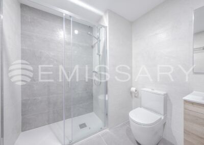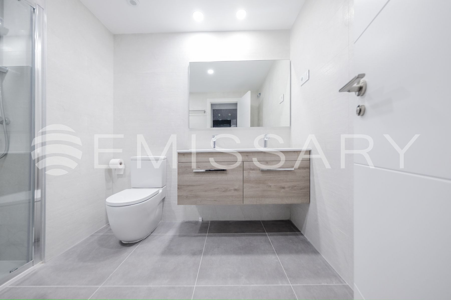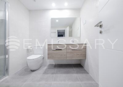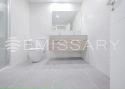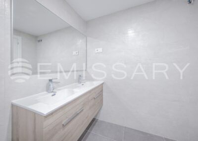 - Baño principal en suite, con alicatados de primera calidad, con doble encastrado sobre mueble de madera con cajones, ducha con mampara.Suelo radiante.