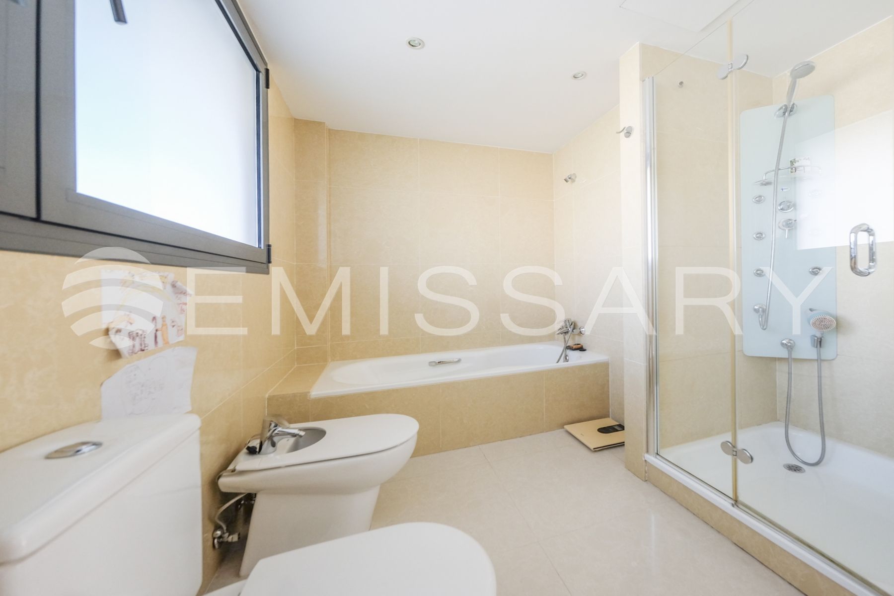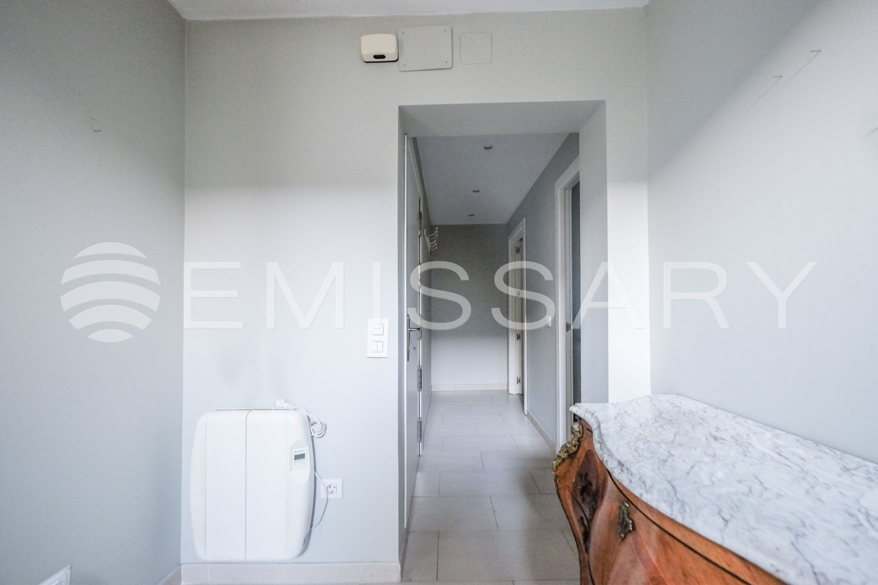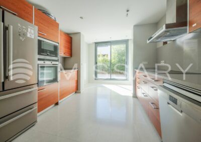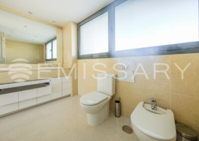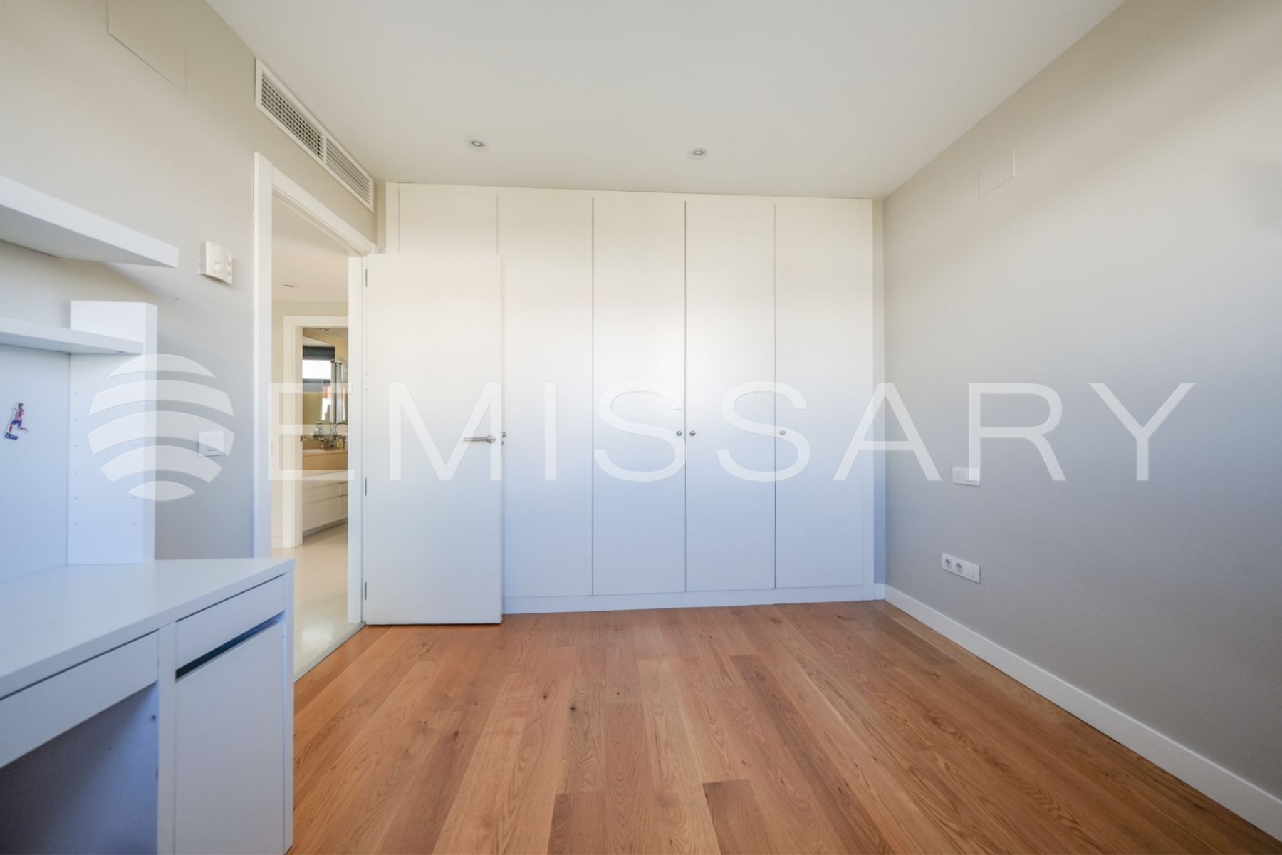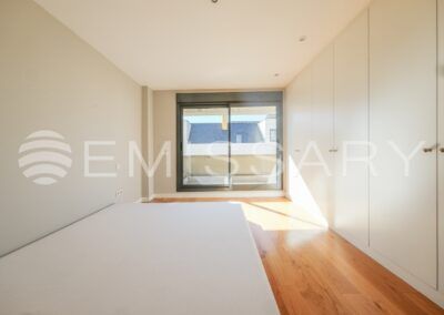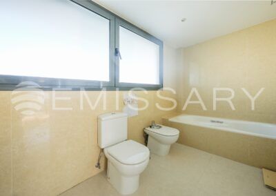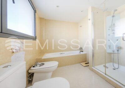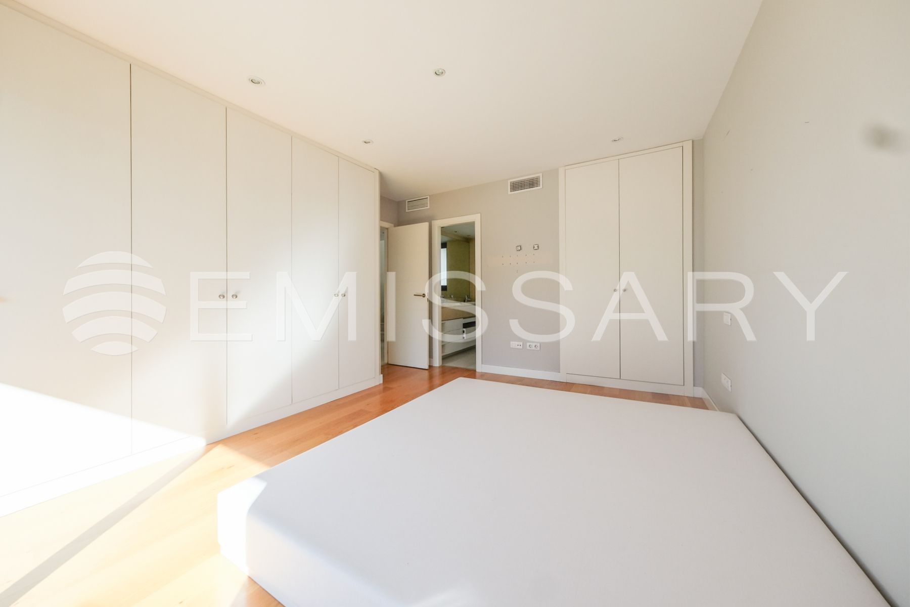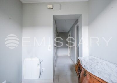 Aire acondicionado por conductos y suelo radiante. Cerramiento exterior con gruesos muros que proporcionan aislamiento acústico y térmico.
