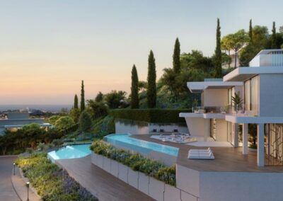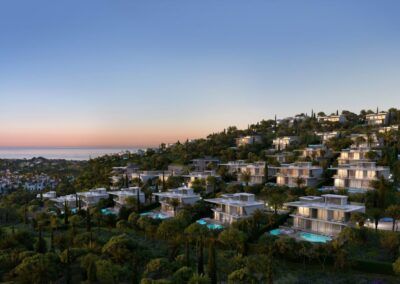 TIERRA VIVA es un complejo residencial de lujo en Benhavís (Marbella) compuesto por 53 villas únicas que se encuentran delicadamente ubicadas en la ladera de una colina, en disposición aterrazada.