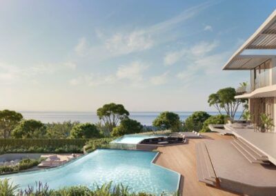 Amplias terrazas en la azotea con impresionantes vistas al Mediterráneo son el escenario perfecto para reuniones familiares y sociales, mientras que la amplia piscina y los exuberantes jardines hacen de estas villas el escenario perfecto para unas vacaciones inolvidables.