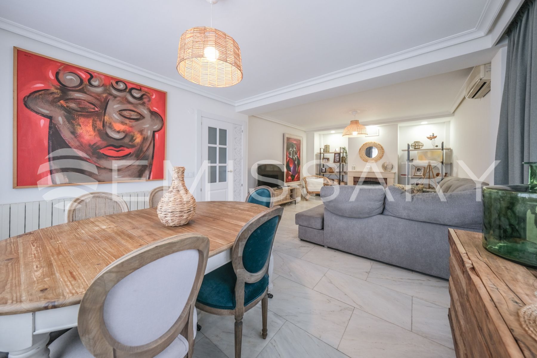 - Suelos de mármol y parquet, perfectamente mantenidos.
