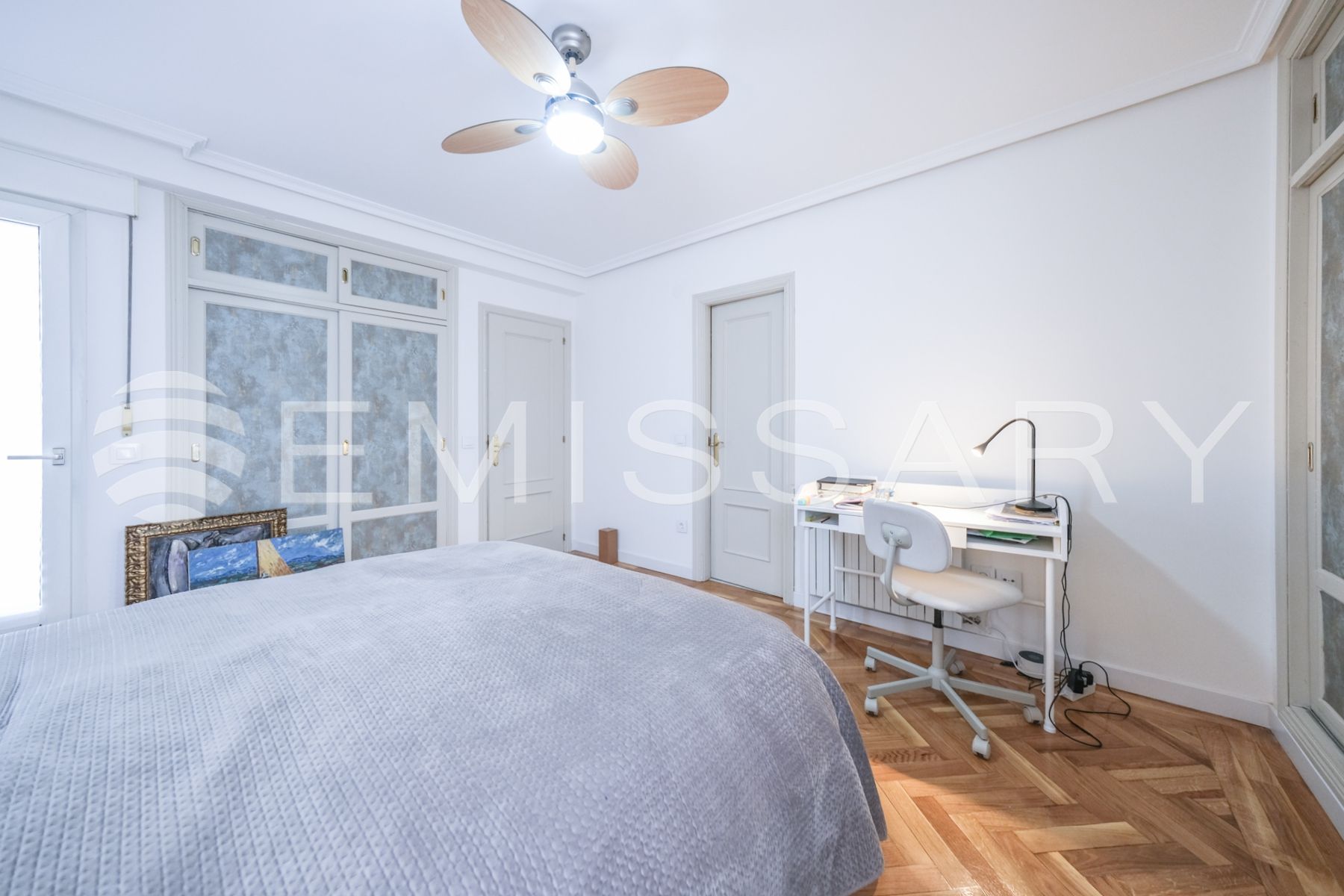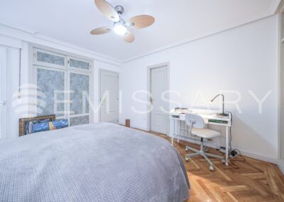 Planta primera: Cuatro amplios dormitorios, uno de ellos con baño en suite. Segundo baño completo con bañera. Armarios empotrados totalmente vestidos en todas las habitaciones. Baños con ventilación natural.