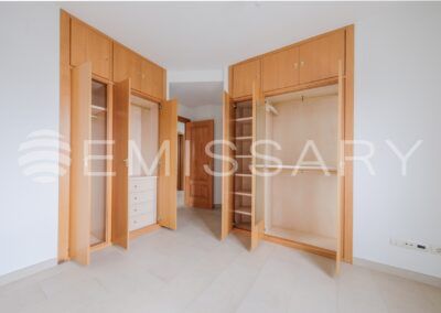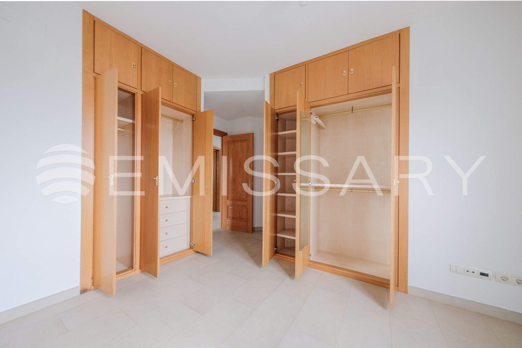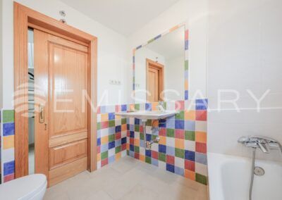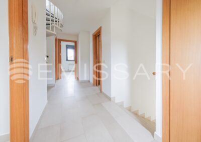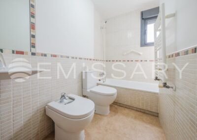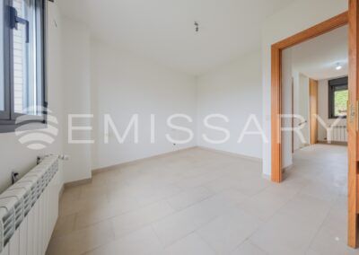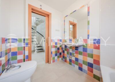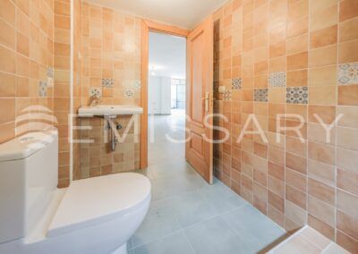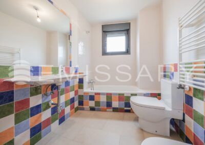 Planta primera: Dormitorio principal con baño en suite y armarios empotrados completamente vestidos. Dos dormitorios secundarios y baño completo.