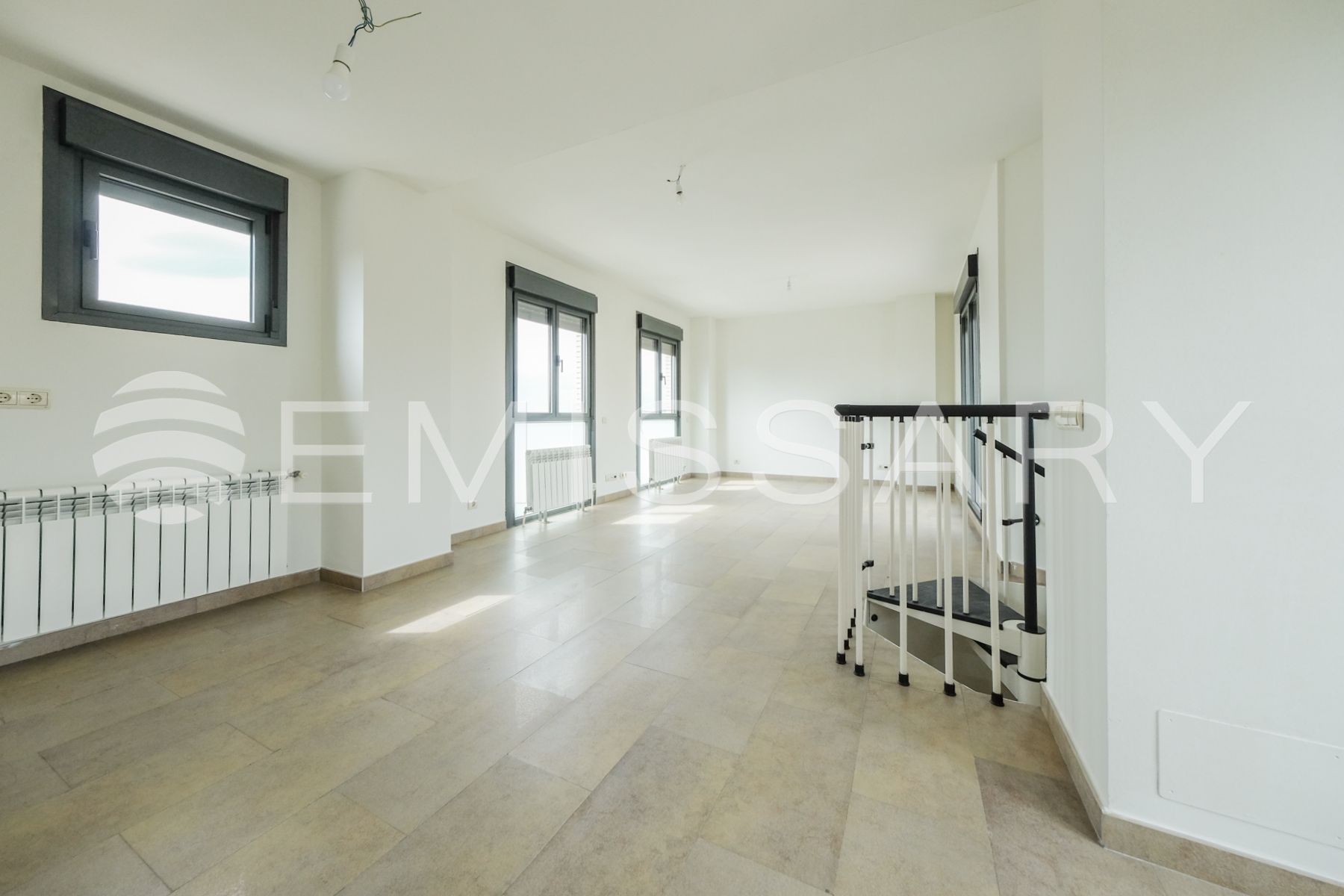 Planta ático: Gran espacio diáfano con preinstalación de tomas para todos los suministros. Salida a espectacular terraza solárium de 30m² con forjado preparado para jacuzzi.
