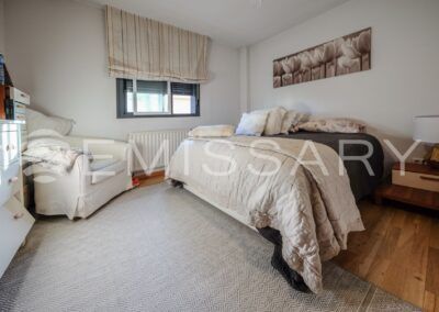 Planta alta con tres habitaciones, la principal con baño en suite y zona de vestidor, las secundarias con baño completo compartido.