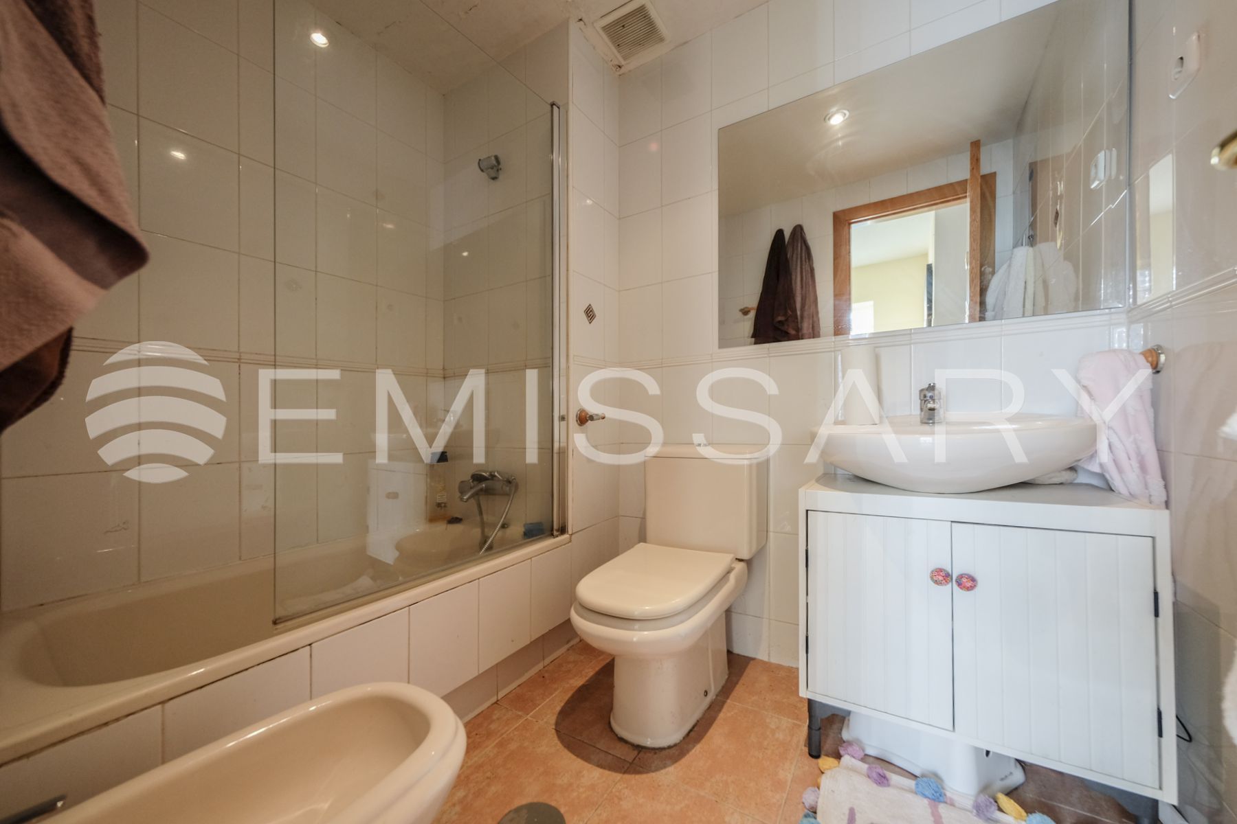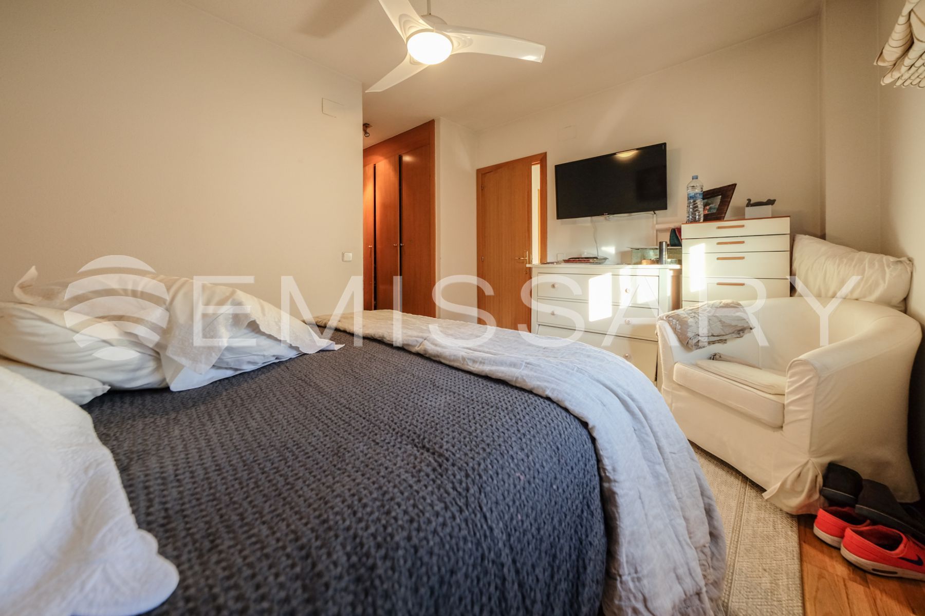 - A/C en salón mediante Split y ventiladores en las habitaciones.