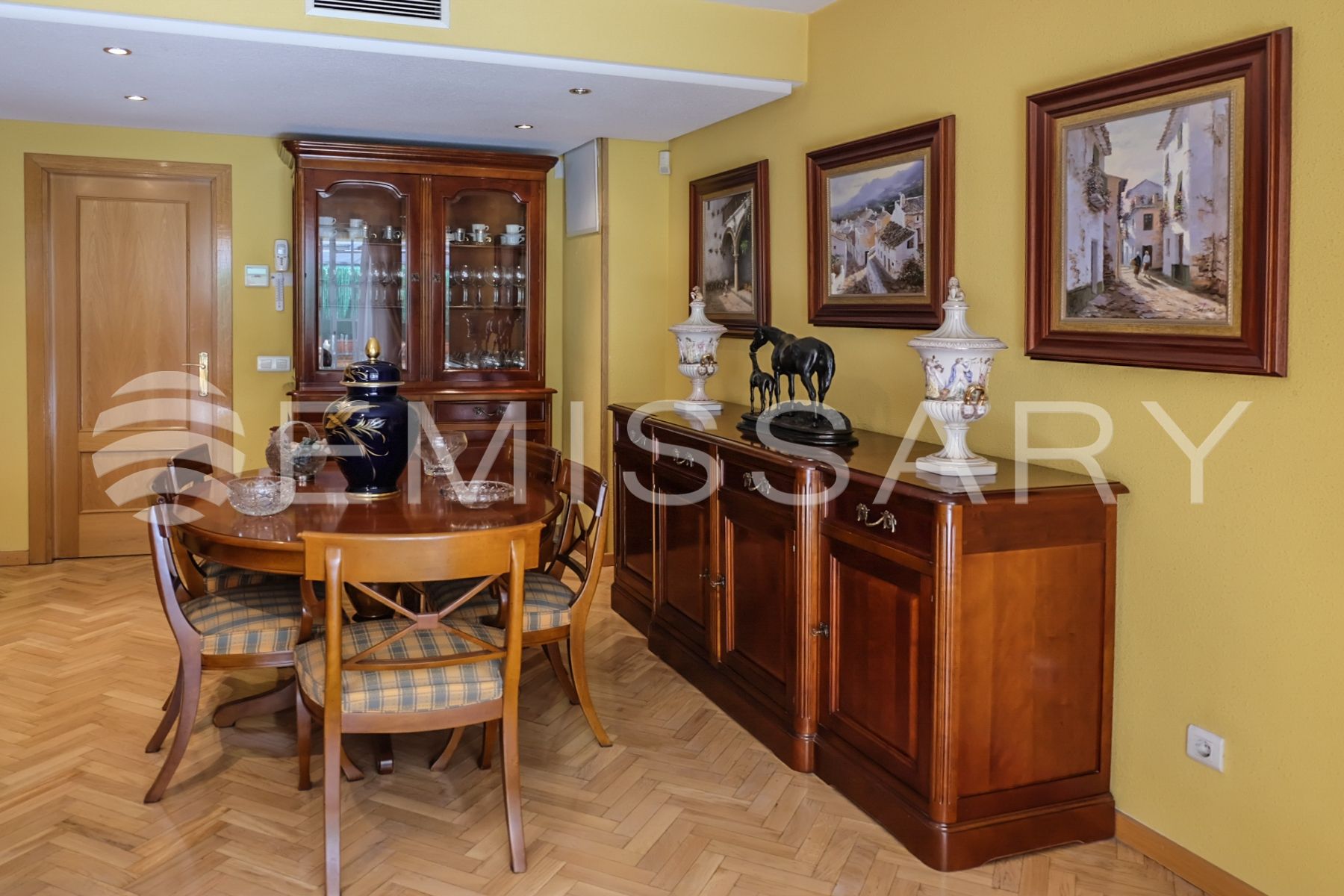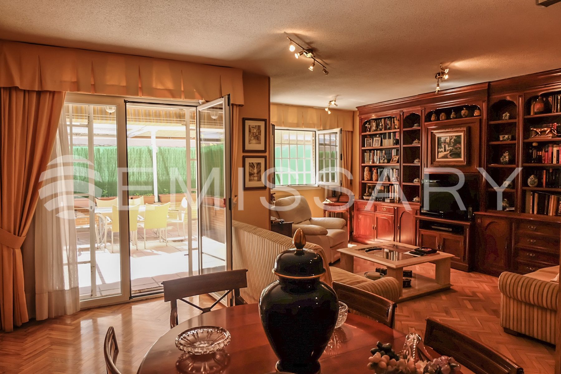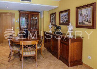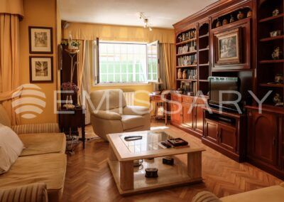 EMISSARY presents this exclusive single-family terraced house, in urbanization with communal pool, located in a quiet and well connected street in one of the most exclusive residential areas of Madrid.