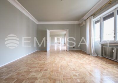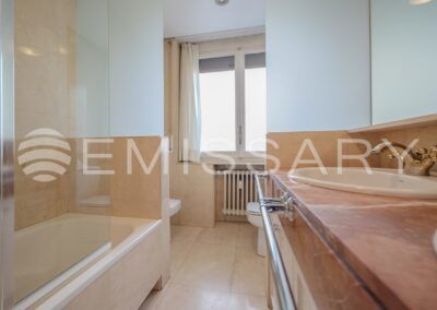 This fantastic home is located in the Salamanca district, qualified as the Golden Mile of Madrid. A step away from Serrano street and Paseo de La Castellana where you can find all kinds of shops and restaurants. Great communication comfort, within walking distance of the subway and bus stops, which facilitate the use of public transport.
