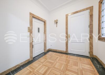 Finca señorial con portero físico y un único vecino por planta, tanto ascensor como montacargas reciben directamente en cada vivienda como zona privativa.